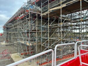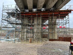 Our works to date have included access solutions for bridge pier construction, scaffolding for reinforcement and formwork operations and safe working platforms across multiple major structures. We have also played a vital role in enabling heavy lifting operations for bridge beam installation by providing bespoke scaffold solutions for pre-lift preparation, alignment works and post-installation access.